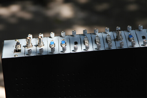 伯奧克新一代研發生產的多個模擬和數字矩陣整合于一個真正模塊化、可擴展、可現場配置的高清混合矩陣。其最大的特點是采用插卡式機箱設計,非常適合于在短的時間內,花費較少的人力成本來安裝新的或替換已有的矩陣切換器板卡。從8、16、17、36、72、最大可配置為 144x144。可選擇HDMI、DVI、VGA&RGB、3G-SDI、CVBS、YPBPR、Fiber、HDBaseT 等接口形式作為輸入輸出,解決了視音頻會議項目中由于視頻信號源種類繁多,各種信號不兼容的困難,并最大程度的節省成本,利于系統升級、擴容及維護。